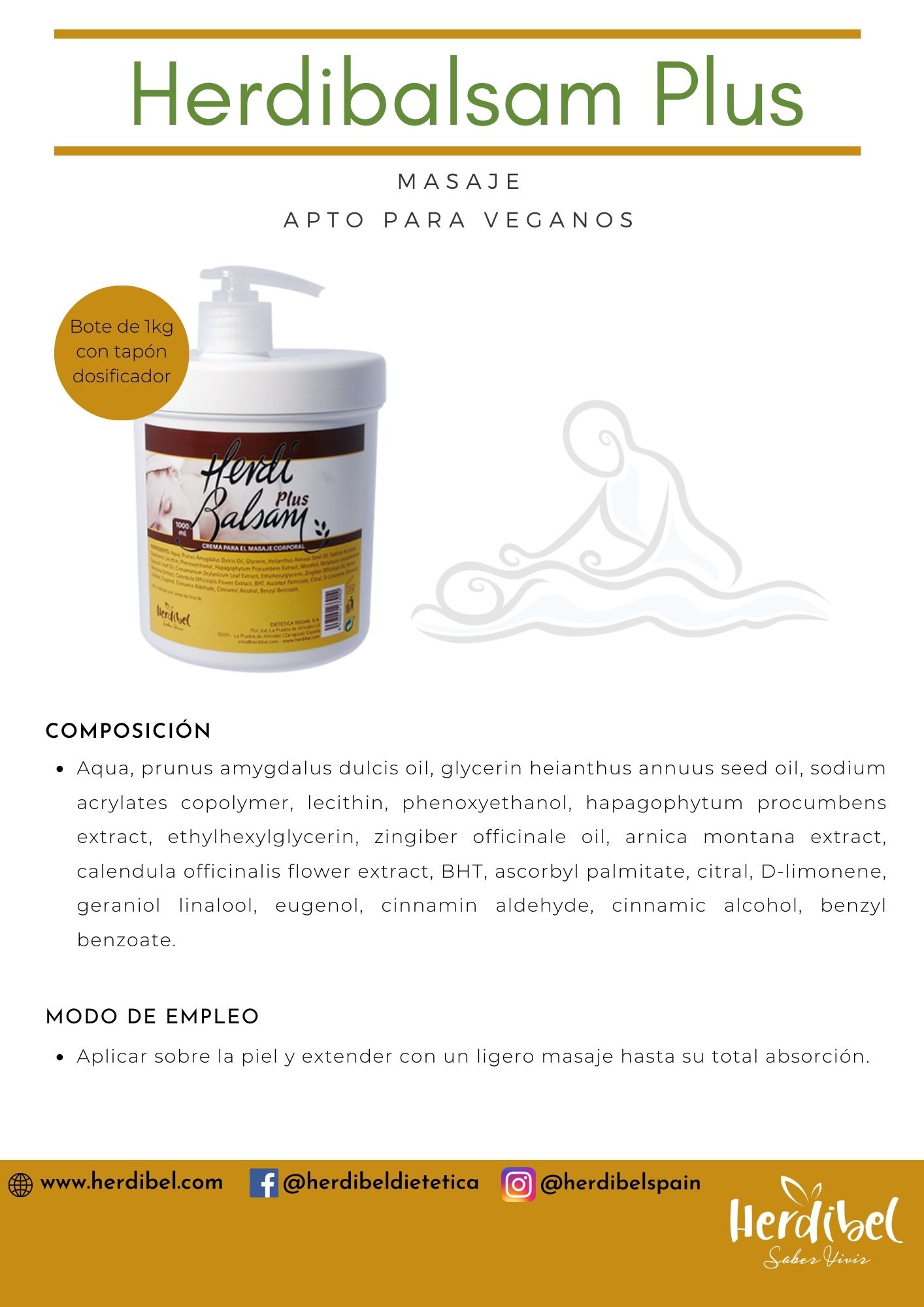 Herdibalsam Balsam Plus es una crema de masaje corporal indicada para masajes de tipo muscular y articular principalmente.